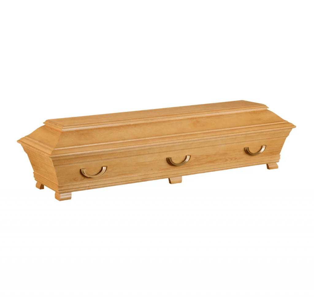 Högtorn begravningskista är ett fint hantverk med profileringar och ett vackert snidat lock. Högtorn har en sorterad träkvalitet helt utan kvistar vilket ger en fantastiskt fin yta och träkänsla. Kistan har en ljus ekbets som framhäver träets struktur och ådring. Godkänd för kremation och jordbegravning.
